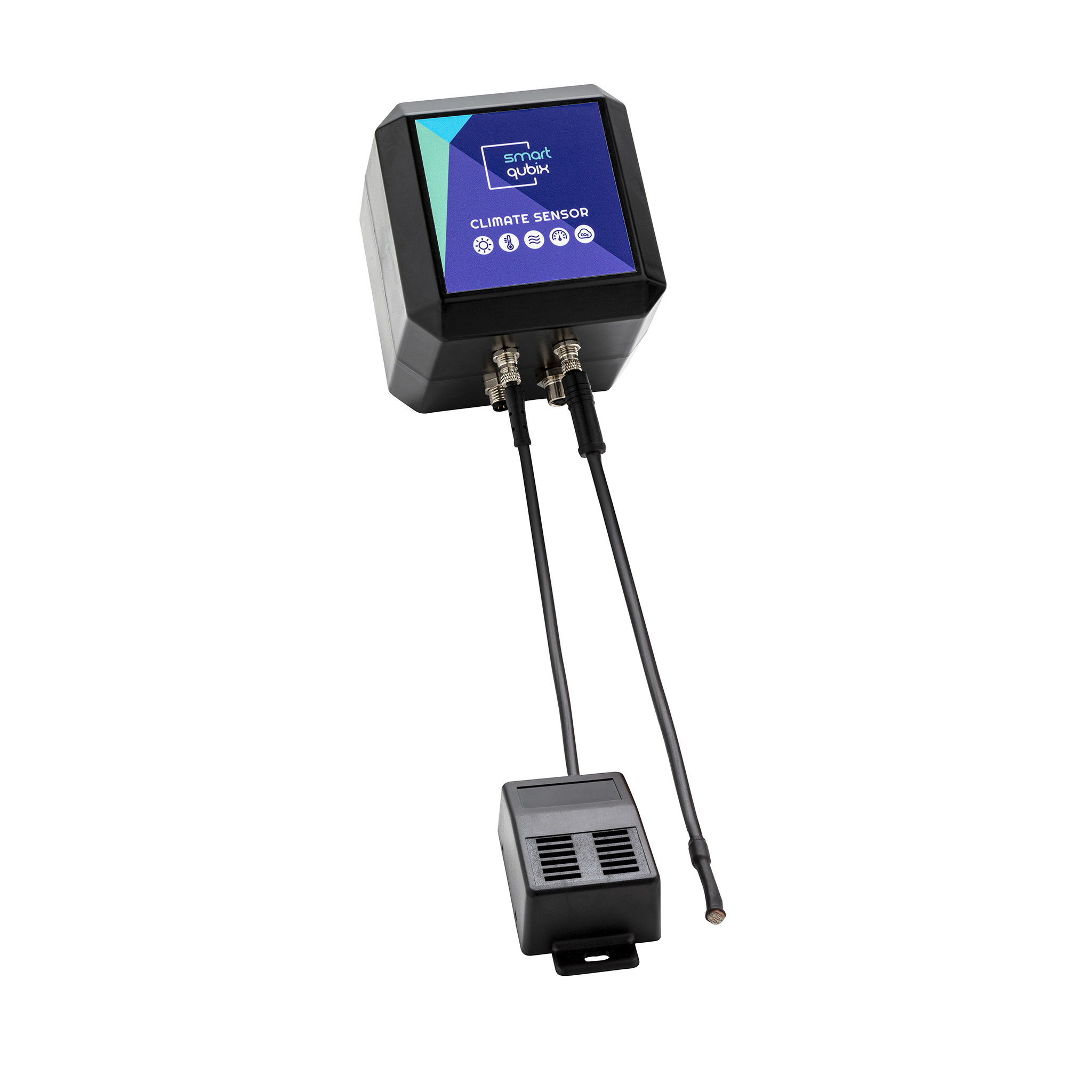 The Smart Qubix Climate Sensor is a satellite unit which can be wirelessly connected to the controller using the Zigbee Gateway and has the following sensors:
